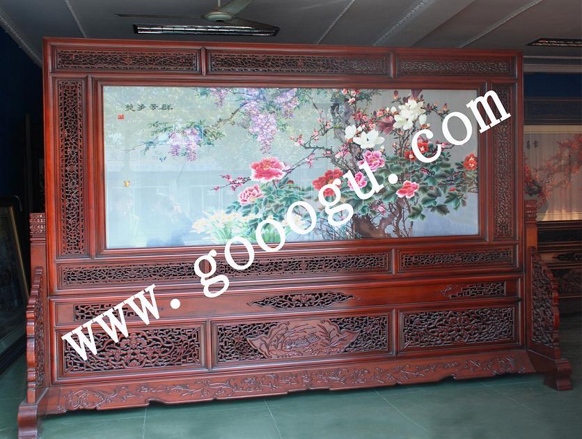 大型风景刺绣屏风|木雕屏风|双面绣屏风