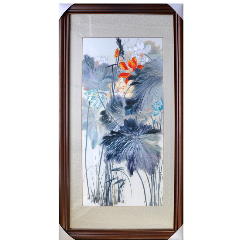 苏绣张大千水墨荷花别墅装饰壁画竖版大型挂画