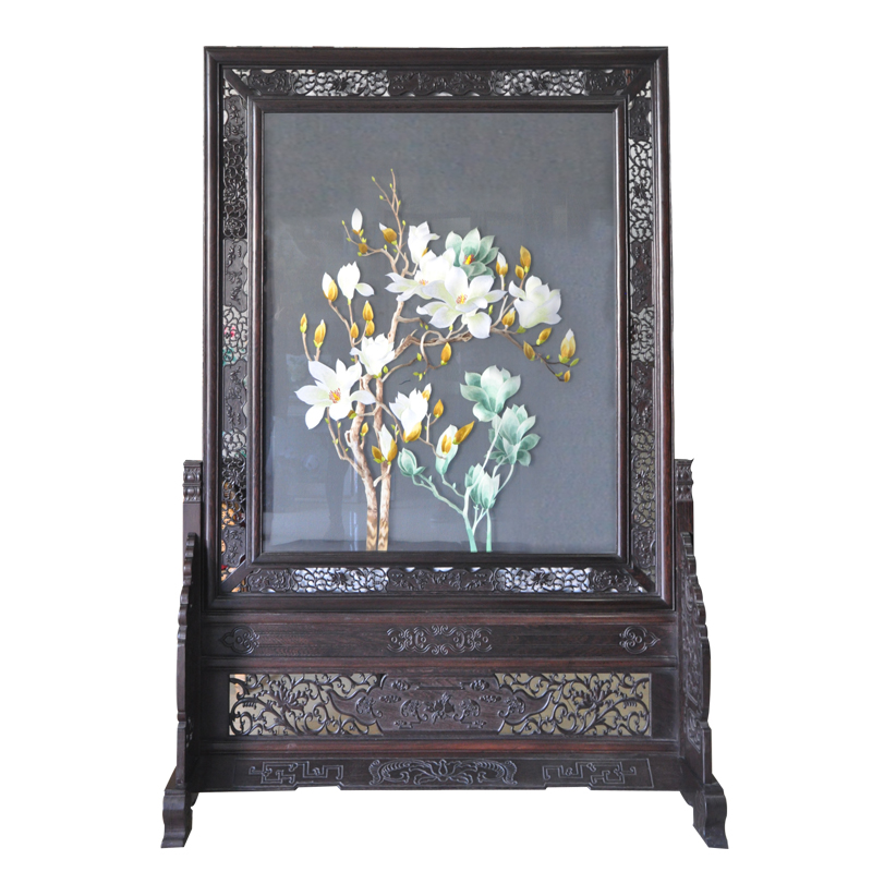 家用苏绣隔断 玉兰双鸟屏风 精品双面刺绣 国花传统工艺品礼品